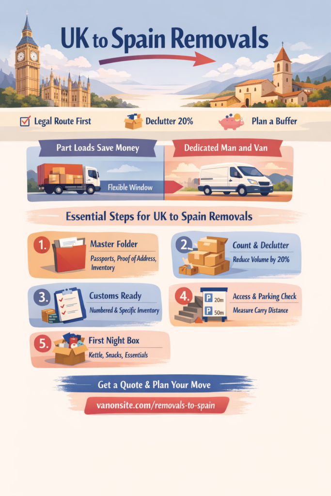 If you want instant momentum, follow this 5 step sequence. It keeps UK to Spain removals under control.
