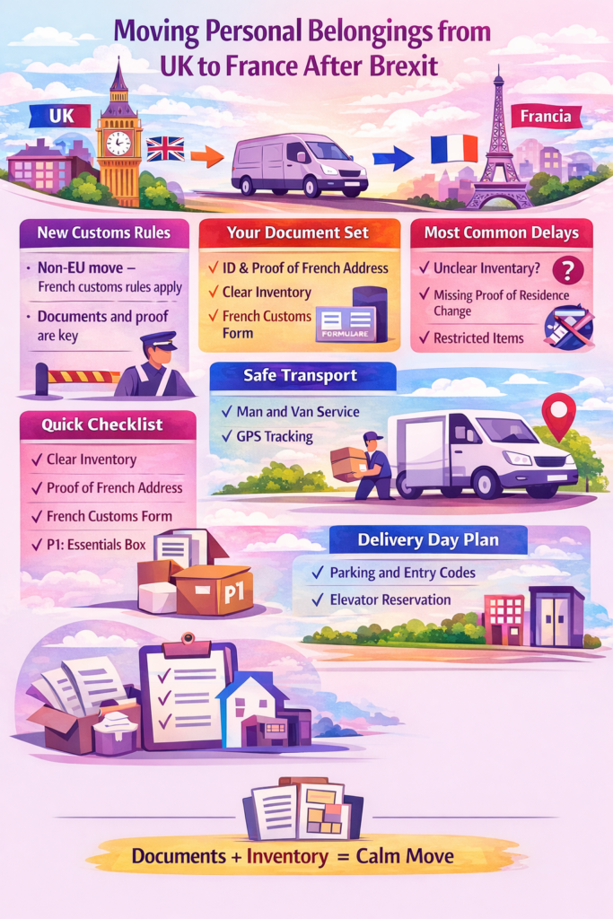 If your goal is simple, this is the path: prepare documents, build a clean inventory, then book transport with a clear plan. That is how moving personal belongings from UK to France after Brexit stays smooth.