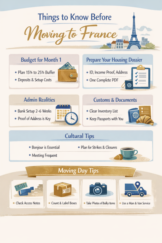 Moving to France feels magical until the practical reality shows up. This guide focuses on the things to know before moving to France that protect your time and your budget.
