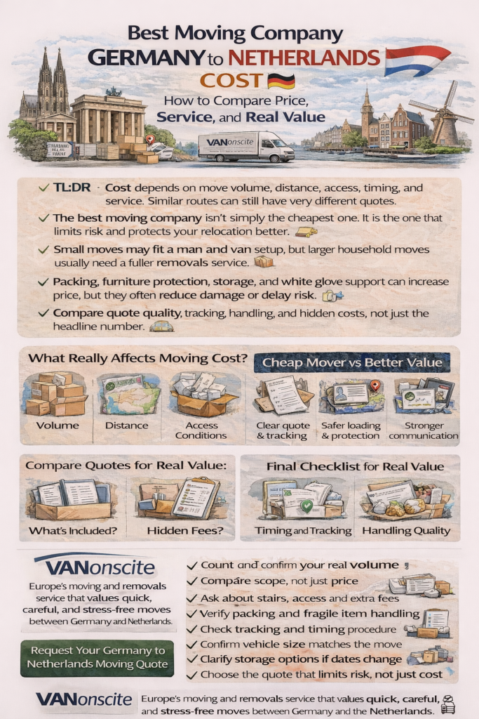The best moving company Germany to Netherlands cost is not the smallest number on the screen. It is the price that gives you real reliability, safer handling, stronger communication, and a much better start once you arrive.