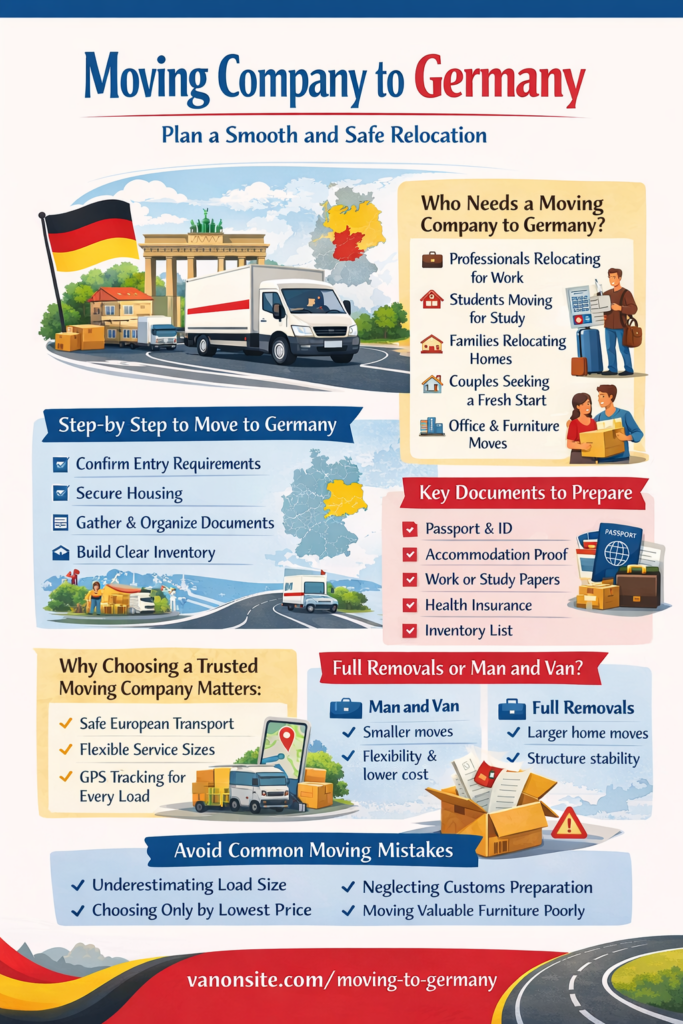 If you are looking for a moving company to Germany that combines speed, security, flexible service sizes, and GPS-tracked delivery, VANonsite offers a smart solution for everything from compact man and van moves to full household relocations.