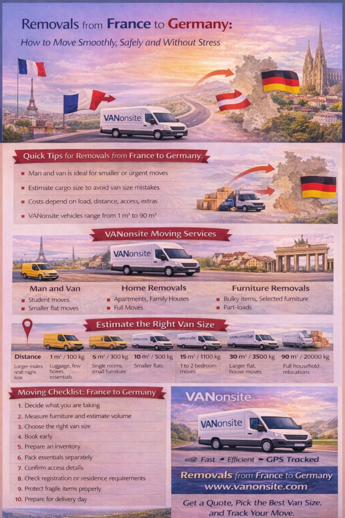 A move from France to Germany often looks simple on paper. In reality, it is far more personal than that. You are not just moving furniture or boxes. You are moving routines, familiar corners of daily life, habits you built quietly over time, and often a decision that changes the whole direction of your future. The good news is that removals from France to Germany can be smooth, efficient, and far less stressful than many people expect when the move is organised early, matched to the right vehicle size, and handled by a dependable man and van or professional removals service.