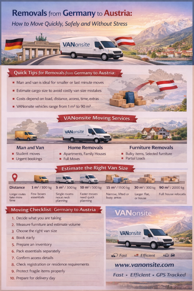 A move from Germany to Austria may look simple on paper, yet real life always travels with you. It is not just furniture, boxes, and suitcases crossing a border. It is your routine, your plans, your comfort, and often the first fragile days of a brand-new chapter. The good news is that removals from Germany to Austria can be smooth, fast, and impressively efficient when the move is planned well, matched to the right vehicle size, and handled by a trusted man and van or professional removals team.
