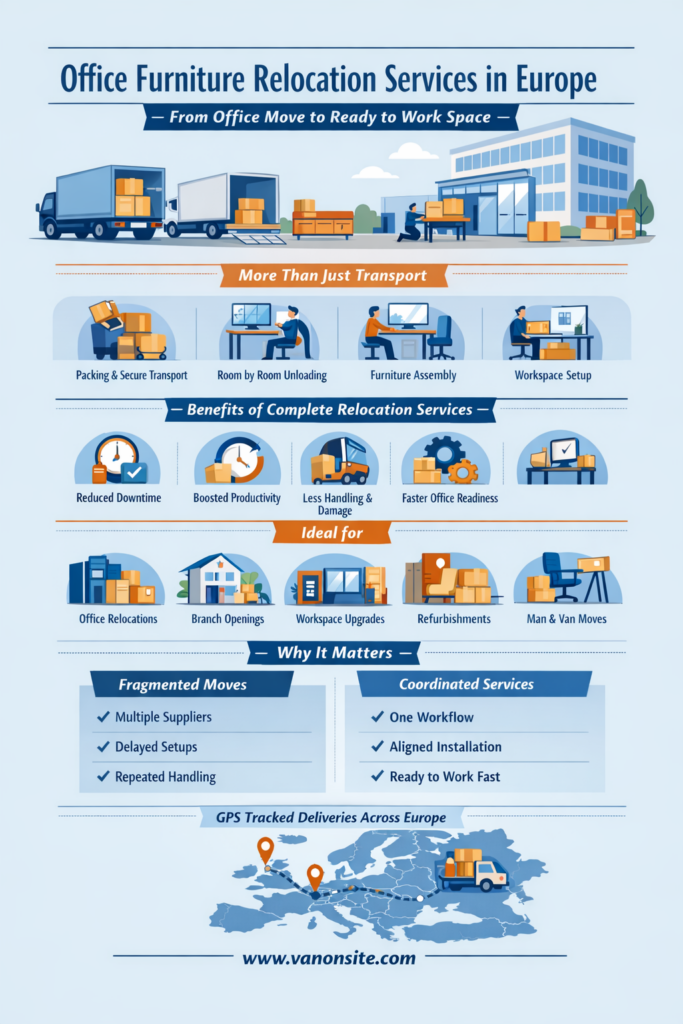 A successful office furniture move depends on more than a vehicle and a delivery date. It depends on careful handling, dependable timing, practical sequencing, and a service model that understands how a workspace actually becomes usable. That is where VANonsite stands out. The company supports smoother office furniture relocation services across Europe through a practical mix of speed, control, and operational flexibility that helps businesses move with far less friction.