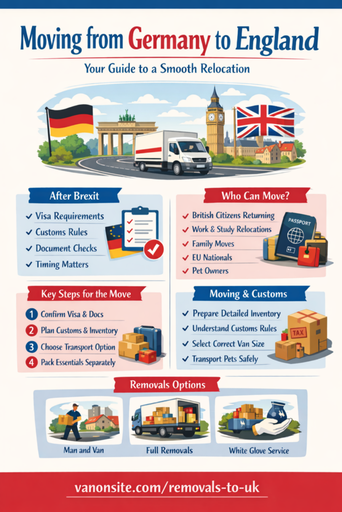 This is exactly where smart preparation changes everything. Instead of scrambling at the last minute, you can build a move that feels controlled, calm, and surprisingly efficient. If you are planning on moving from Germany to England for work, study, family, or a fresh start, this guide will walk you through the essentials quickly and clearly. It will also help you understand when a lean man and van service makes sense, when you need fuller removals support, and how a company like VANonsite can make the journey feel safer with secure transport and GPS tracking for every load.